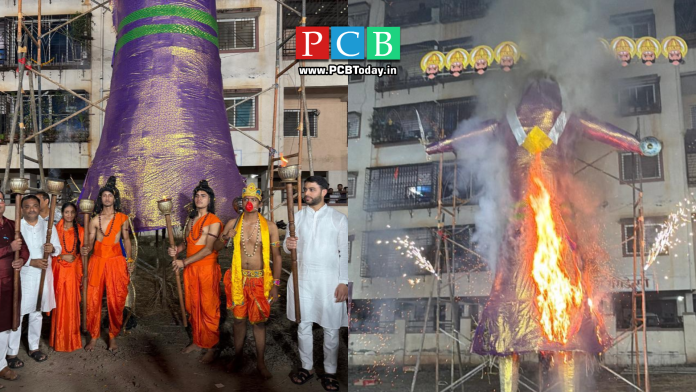 पिंपरी – शिवसेना नगरसेवक प्रमोद कुटे यांच्या वतीने विजयादशमी निमित्त ३५ फुटी रावणाचे दहन करण्यात आले. तसेच प्रभु श्रीराम, लक्ष्मण, सीता व हनुमान यांची अश्वरथ व ढोल ताशांच्या गजरात भव्य मिरवणूक काढण्यात आली. ही मिरवणूक पाहण्यासाठी नागरिकांची मोठी गर्दी झाली होती.
