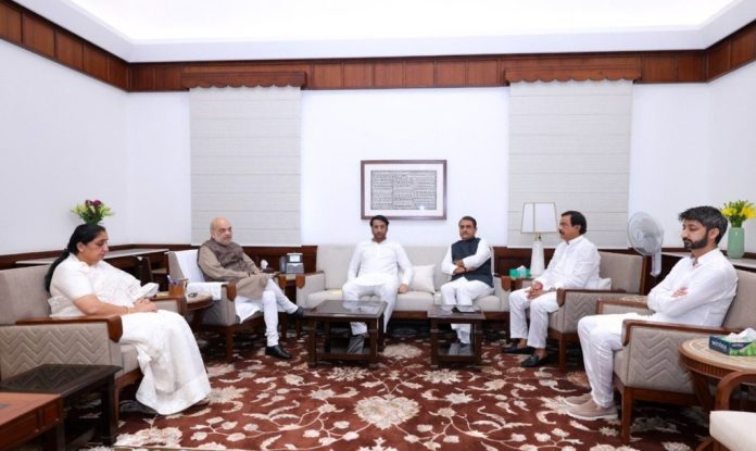 राज्याच्या उपमुख्यमंत्री सुनेत्रा अजित पवार यांनी आज पंतप्रधान नरेंद्र मोदी आणि केंद्रीय गृहमंत्री अमित शाह यांची भेट घेतली आहे. मंगळवारी रात्री उशिरा दिल्लीत दाखल झाल्यानंतर सुनेत्रा पवार यांनी आज सकाळी राष्ट्रवादीचे कार्यकारी अध्यक्ष प्रफुल्ल पटेल यांची भेट घेत चर्चा केली. त्यानंतर सुनेत्रा पवार यांच्यासह पार्थ पवार, जय पवार, सुनील तटकरे आणि स्वत: प्रफुल्ल पटेल यांनीही आधी पंतप्रधान मोदी आणि नंतर अमित शाह यांची भेट घेतली.