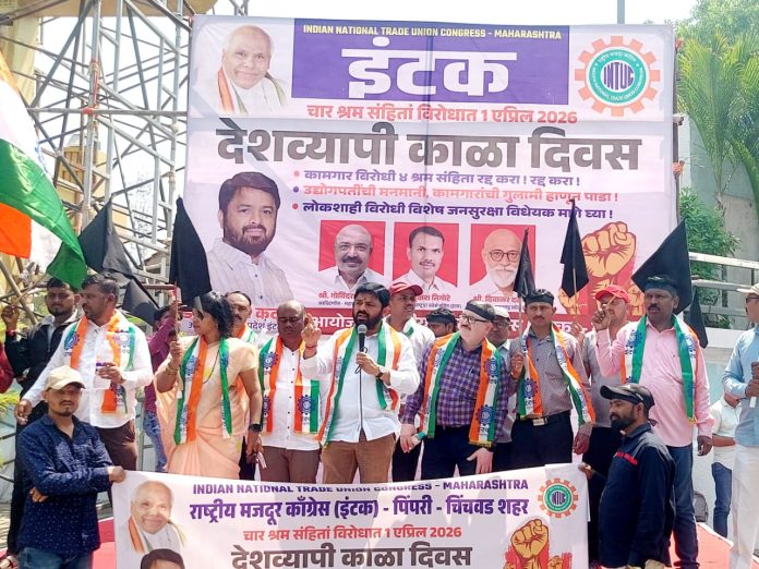 दि.०१(पीसीबी)- केंद्र सरकारच्या कामगारविरोधी, शेतकरीविरोधी व जनविरोधी धोरणांच्या निषेधार्थ १ एप्रिल रोजी पिंपरी-चिंचवड शहरात ‘काळा दिवस’ आंदोलन उत्साहात व मोठ्या प्रतिसादात पार पडले. पिंपरी येथील भारतरत्न डॉ. बाबासाहेब आंबेडकर स्मारक चौकात आयोजित या आंदोलनात बहुसंख्य कामगार, कर्मचारी व नागरिक सहभागी झाले होते. इंटक व हिंद कामगार संघटना (इंटक संलग्न) यांच्या नेतृत्वाखाली हे आंदोलन पार पडले.