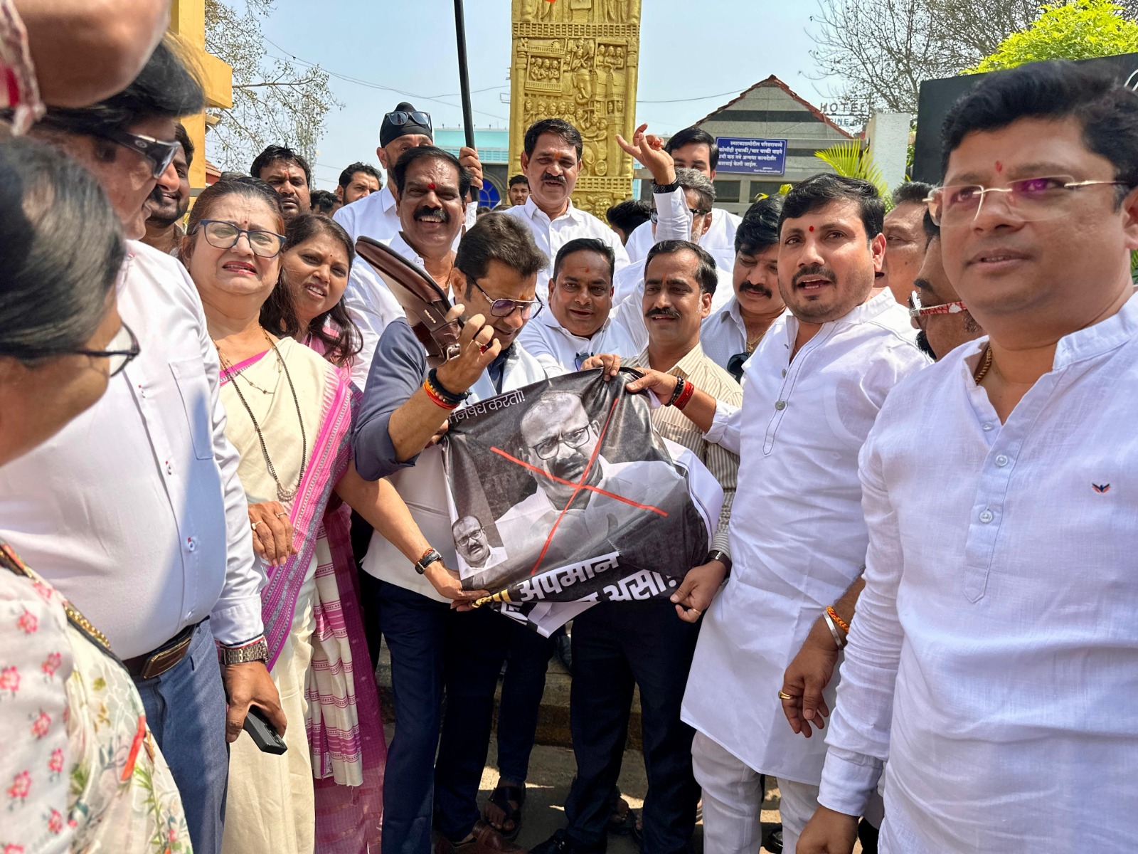 दि.१६(पीसीबी)-काँग्रेस प्रदेशाध्यक्ष हर्षवर्धन सपकाळ यांनी छत्रपती शिवाजी महाराज आणि टिपू सुलतान यांची तुलना करून महाराष्ट्राच्या अस्मितेचा अपमान केल्याच्या निषेधार्थ रविवारी भारतीय जनता पार्टी पिंपरी चिंचवड शहराच्या वतीने पिंपरी चौकात आंदोलन करण्यात आले. भाजपचे ८४ नगरसेवक, ४ आमदार आणि सव्वाशेवर पदाधिकाऱ्यांची जंबो कार्यकारणी असताना आमदार उमा खापरे यांच्यासह अवघे ७ नगरसेवक, मोजके १० पदाधिकारी आणि ४९ कार्यकर्ते उपस्थित होते. उमेदवारी मागण्यासाठी ८५० कार्यकर्त्यांनी मागणी केली पण, आताच्या आंदोलनाकडे त्यांनीही पाठ फिरवली. दरम्यान, कार्यकर्त्यांनी सपकाळ यांच्या प्रतिमेला जोडे मारून आपला संताप व्यक्त केला आणि त्यांच्या हकालपट्टीची मागणी केली.