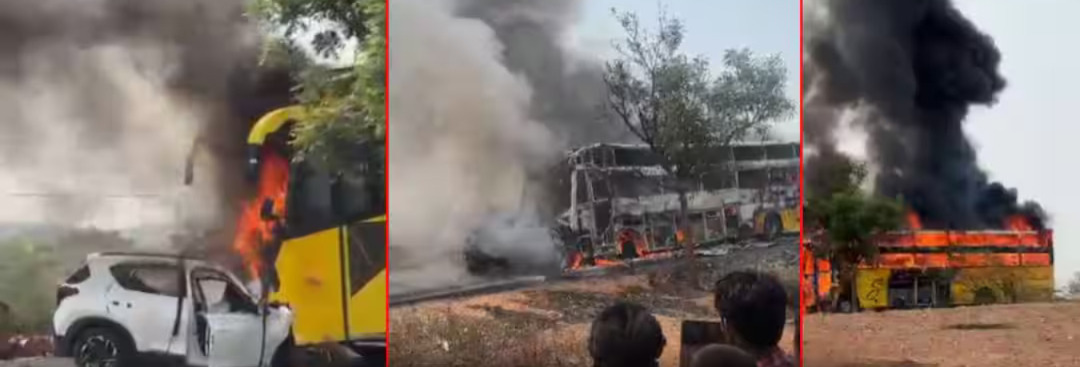 खासगी आरामदायी बस बंगळुरुहून कलबुर्गीला निघाली होती, तर कार विरुद्ध दिशेने येत होती. भरधाव कार खासगी आराम बसला येऊन धडकली असता बसने लगेच पेट घेतला. या भीषण दुर्घटनेत बसने पेट घेतल्यानंतर बसमधील प्रवाशांनी जीव वाचवण्यासाठी हाताला मिळेल ते आपले सामान घेऊन बसमधून बाहेर पडण्याची धडपड केली. मात्र, बसमधील सहा प्रवाशांचा आगीत होरपळून मृत्यू झाल्याची ह्रदयद्रावक घटना घडली. तर, इतर प्रवाशांना आपला जीव वाचविण्यात यश मिळाले. या दुर्घटनेत अनेक प्रवासी देखील जखमी झाले असून त्यांना उपचारासाठी हॉस्पिटलला हलविण्यात आले आहे.