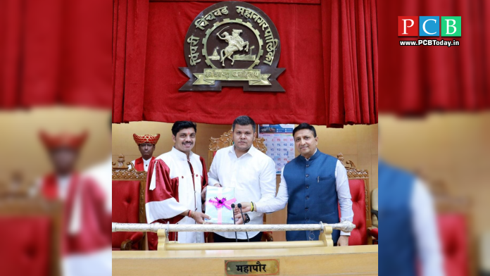 पिंपरी, दि. २५ : पिंपरी चिंचवड महानगरपालिकेची आज अर्थसंकल्पीय विशेष सभा आयोजित करण्यात आली होती. पिंपरी चिंचवड महानगरपालिकेच्या आयुक्तपदी नव्याने रूजू झालेले डॉ. विजय सूर्यवंशी यांची ही पहिलीच सर्वसाधारण सभा असल्याने त्यांचा सभागृहाला परिचय करून देण्यात आला. पिंपरी चिंचवड महापालिका आयुक्त म्हणून यशस्वी कामकाज करण्यासाठी महापौर रवि लांडगे यांनी त्यांना पुस्तक भेट देऊन शुभेच्छा दिल्या. आयुक्त डॉ. विजय सूर्यवंशी गतिमान प्रशासनातून पिंपरी चिंचवड शहराचा विकास साधतील, असा विश्वास महापौर रवि लांडगे यांनी यावेळी व्यक्त केला.
