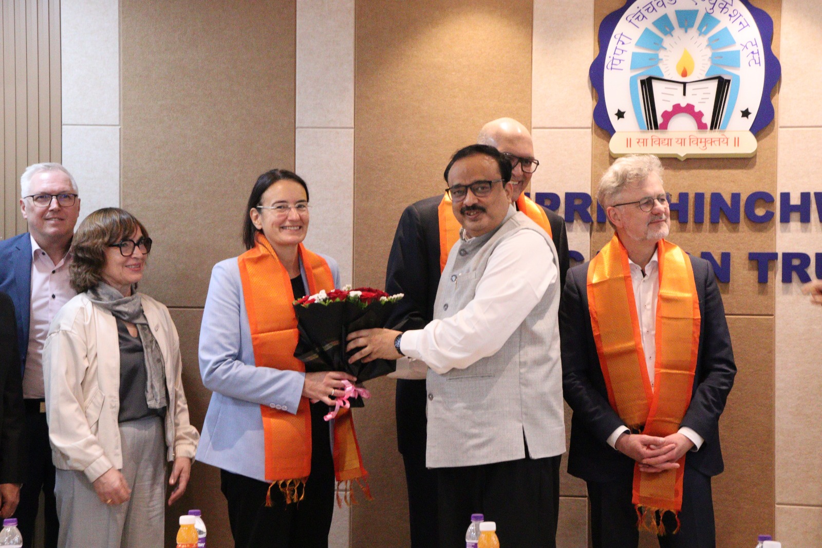 पिंपरी चिंचवड एज्युकेशन ट्रस्ट (पीसीईटी) कार्यालय आणि साते वडगाव मावळ येथील पिंपरी चिंचवड विद्यापीठ (पीसीयू), पुणे येथे जर्मनीतील कार्लस्रुहे शहराचे महापौर डॉ. फ्रँक मेंट्रुप यांच्यासह उच्चस्तरीय जर्मन शिष्टमंडळाने नुकतीच भेट दिली. या भेटीचा मुख्य उद्देश शैक्षणिक सहकार्य, संयुक्त संशोधन, प्राध्यापक देवाणघेवाण, नवोन्मेष तसेच उद्योग, उच्च शिक्षण भागीदारी या विषयांवर सखोल चर्चा करणे हा होता.