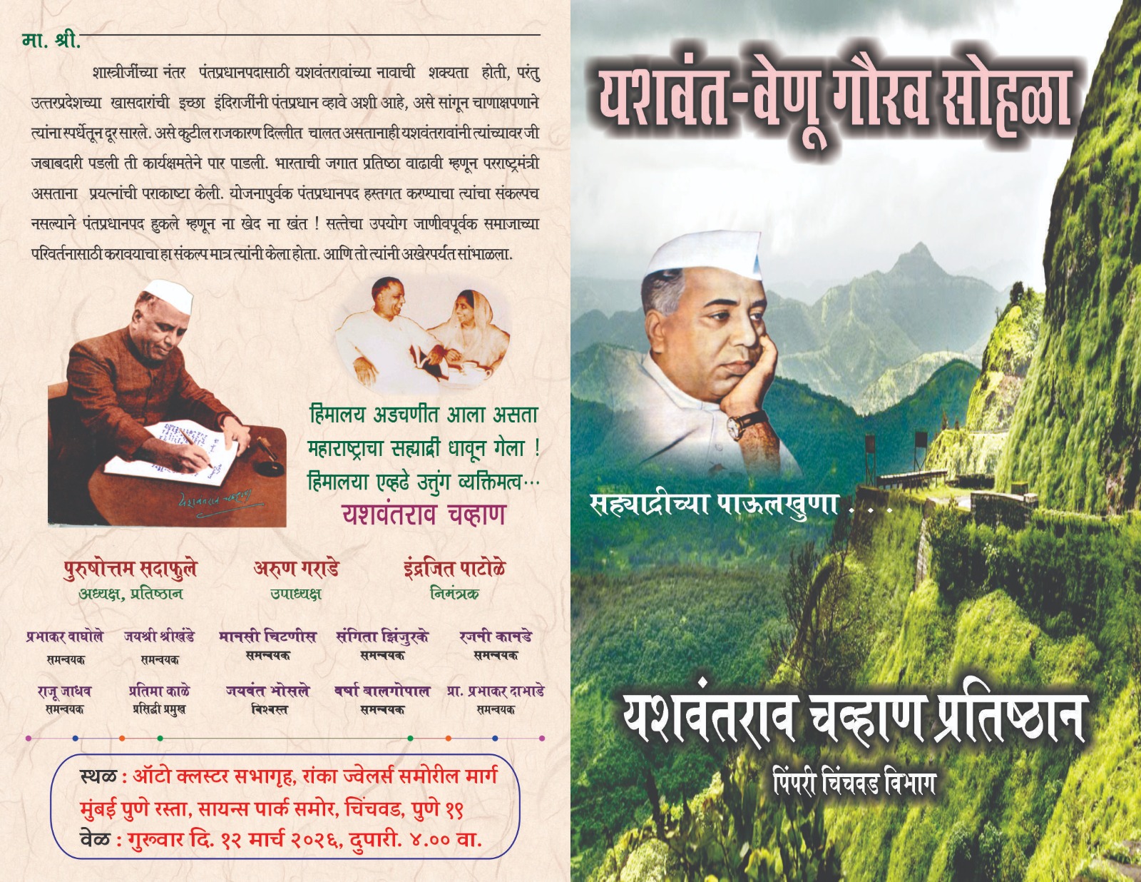 पिंपरी, दि. ५ – पिंपरी – चिंचवड महानगरपालिकेचे नवनिर्वाचित महापौर रवी लांडगे यांना यशवंतराव चव्हाण प्रतिष्ठान, पिंपरी – चिंचवड विभागाच्या वतीने गुरुवार, दिनांक १२ मार्च २०२६ रोजी दुपारी ठीक ०४:०० वाजता यशवंतराव चव्हाण युवा पुरस्कार प्रदान करून गौरविण्यात येणार आहे. ८९ व्या अखिल भारतीय मराठी साहित्य संमेलनाचे अध्यक्ष डॉ. श्रीपाल सबनीस यांच्या हस्ते संपन्न होणार्‍या या सन्मान सोहळ्याचे अध्यक्षस्थान महाराष्ट्र राज्य आदर्शगाव संकल्प योजनेचे कार्याध्यक्ष पद्मश्री पोपटराव पवार भूषविणार असून ज्येष्ठ समाजसुधारक पद्मश्री गिरीश प्रभुणे यांची प्रमुख पाहुणे म्हणून उपस्थिती राहील. नारायण सुर्वे साहित्य कला अकादमीचे अध्यक्ष सुदाम भोरे सोहळ्याचे स्वागताध्यक्ष आहेत. यापूर्वी, भाऊसाहेब भोईर, संजोग वाघेरे, राजाभाऊ गोलांडे, सुरेश घुले, अनिल भोसले, शांताराम भालेकर, उमा खापरे, सुलभा उबाळे या राजकीय क्षेत्रातील मान्यवरांना यशवंतराव चव्हाण युवा पुरस्कार प्रदान करून सन्मानित करण्यात आले आहे, अशी माहिती प्रतिष्ठानचे पिंपरी – चिंचवड विभाग अध्यक्ष पुरुषोत्तम सदाफुले यांनी दिली असून या सोहळ्यात राष्ट्रपतींचे धोरणात्मक सल्लागार डाॅ. देवानंद शिंदे आणि त्यांच्या सुविद्य पत्नी अनिता शिंदे या दांपत्याला यशवंत – वेणू पुरस्कार प्रदान करून गौरविण्यात येणार आहे. त्याचबरोबर नगरसेविका शिवानी नरळे यांना (वेणूताई चव्हाण युवती पुरस्कार), आर. के. डेव्हलपर्स ॲण्ड बिल्डर्सचे संचालक राजाराम मलघे यांना (यशवंतराव चव्हाण उद्योगभूषण पुरस्कार) आणि ब्राईट इंडस्ट्रीजचे संचालक वसंत गायकवाड यांना (यशवंतराव चव्हाण उद्योगविभूषण पुरस्कार) प्रदान करून सन्मानित करण्यात येणार आहे. याप्रसंगी श्रमश्री बाजीराव सातपुते ‘यशवंतराव इतिहासाचं एक सोनेरी पान’ या विषयावर व्याख्यान देणार आहेत. नागरिकांनी या सोहळ्याचा आवर्जून लाभ घ्यावा, असे आवाहन प्रतिष्ठानच्या वतीनेकरण्यात आले आहे.पिंपरी, दि. ५ – पिंपरी – चिंचवड महानगरपालिकेचे नवनिर्वाचित महापौर रवी लांडगे यांना यशवंतराव चव्हाण प्रतिष्ठान, पिंपरी – चिंचवड विभागाच्या वतीने गुरुवार, दिनांक १२ मार्च २०२६ रोजी दुपारी ठीक ०४:०० वाजता यशवंतराव चव्हाण युवा पुरस्कार प्रदान करून गौरविण्यात येणार आहे. ८९ व्या अखिल भारतीय मराठी साहित्य संमेलनाचे अध्यक्ष डॉ. श्रीपाल सबनीस यांच्या हस्ते संपन्न होणार्‍या या सन्मान सोहळ्याचे अध्यक्षस्थान महाराष्ट्र राज्य आदर्शगाव संकल्प योजनेचे कार्याध्यक्ष पद्मश्री पोपटराव पवार भूषविणार असून ज्येष्ठ समाजसुधारक पद्मश्री गिरीश प्रभुणे यांची प्रमुख पाहुणे म्हणून उपस्थिती राहील. नारायण सुर्वे साहित