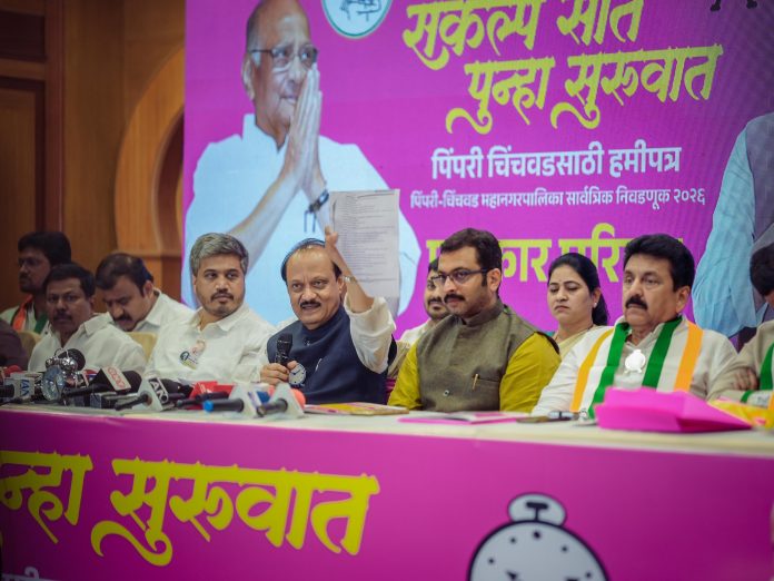 पिंपरी, दि.११ – मोफत मेट्रो, पीएमपीएल बस प्रवास,विद्यार्थ्यांना डेटासह टॅबलेट, ५०० चौ.फुटाच्या घरांना मालमत्ताकर माफी, रोज पाणी, टँकरमुक्त शहर, वादग्रस्त डिपी रद्द करणार, लाडक्या बहिणींना ५ लाखाचे बिनव्याजी कर्ज, खड्डेमुक्त शहर आदी आश्वासने राष्ट्रवादी काँग्रेसने पिंपरी चिंचवड हमीपत्रात दिली आहेत. PMCM हद्दीतील नागरिकांसाठी शहरी गरीब आरोग्य योजना,या नवीन योजनेचा त्यात समावेश आहे. या योजनेत वैद्यकीय उपचारांसाठी ५ लाखापर्यंत अर्थसहाय्य करण्यात येणार आहे. या व अशा अन्य संकल्पनांचा समावेश असलेले हमीपत्र,PCMC राष्ट्रवादी काँग्रेसने, महापालिका निवडणुकीसाठी ‘संकल्प सात, पुन्हा सुरवात’ या नावाने नागरिंकाची मागणी विचारात घेऊन प्रसिध्द केले आहे. पक्षाचे राष्ट्रीय अध्यक्ष आणि राज्याचे उपमुख्यमंत्री अजित पवार य़ांनी त्याचे प्रकाशन केले. यावेळी उपमुख्यमंत्री अजित पवार, खासदार डॉ.अमोल कोल्हे, महाराष्ट्र राज्य विधानसभा उप अध्यक्ष आण्णासाहेब बनसोडे, आमदार श्विलास लांडे यांच्या प्रमुख तसेच शहराध्यक्ष योगेश बहल, शहराध्यक्ष तुषार कामठे, राष्ट्रवादी काँग्रेस पार्टी आणि राष्ट्रवादी काँग्रेस पार्टी शरदचंद्र पवार पिंपरी चिंचवड शहर (जिल्हा) चे पदाधिकारी यावेळी उपस्थित होते.