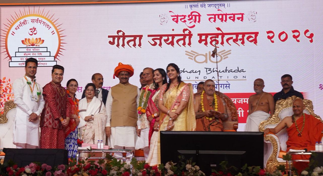 पुणे, दि. ३० – वेदश्री तपोवनातर्फे आयोजित गीता जयंती महोत्सवाच्या दुसऱ्या दिवशी कांची कामकोटी जगद्गुरू शंकराचार्य अनंतश्री विजयेंद्र सरस्वती महाराज आणि लोकसभेचे सभापति ओम बिर्ला यांची प्रमुख उपस्थिती होती. पुण्याचे प्रसिद्ध उद्योजक आणि महर्षि वेदव्यास प्रतिष्ठानचे ट्रस्टी श्री अभय भुतडा या कार्यक्रमाचे यजमान आहेत.