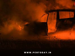 देवदर्शनाहून परतताना कार बसवर आदळल्याने लागलेल्या आगीत सहा प्रवाशांचा होरपळून मृत्यू