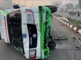 मुंबई बेंगलोर महामार्गावर रुग्णवाहिका पलटली