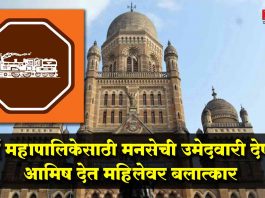 मुंबई महापालिकेसाठी मनसेची उमेदवारी देण्याचे आमिष देत महिलेवर बलात्कार