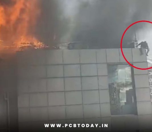 थरारक! कॅफेला आग लागताच जीव वाचविण्यासाठी तरुणाची चौथ्या मजल्यावरून उडी