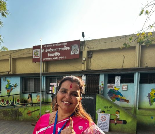 प्रभाग क्र.८ च्या राष्ट्रवादीच्या उमदेवार सीमा सावळे यांनी बजावला मतदानाचा हक्क