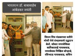 मोशीमध्ये त्रिरत्न मित्र मंडळाच्या वतीने भारतरत्न डॉ. बाबासाहेब आंबेडकर यांच्या जयंतीचे औचित्य साधून ग्रंथालयाची स्थापना