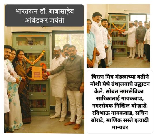 मोशीमध्ये त्रिरत्न मित्र मंडळाच्या वतीने भारतरत्न डॉ. बाबासाहेब आंबेडकर यांच्या जयंतीचे औचित्य साधून ग्रंथालयाची स्थापना