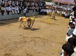 कुरुळीत मेगा फायनल हिंदकेसरी व ट्रॅक्टरचे ब्रिजेश धुमाळ व प्रदीप टिंगरे यांच्या बैलजोडीस मान