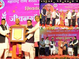 स्वामी गोविंददेव गिरीजी महाराज यांचा महाराष्ट्र मराठी पत्रकार संघाकडून जीवनगौरव पुरस्काराने सन्मान.